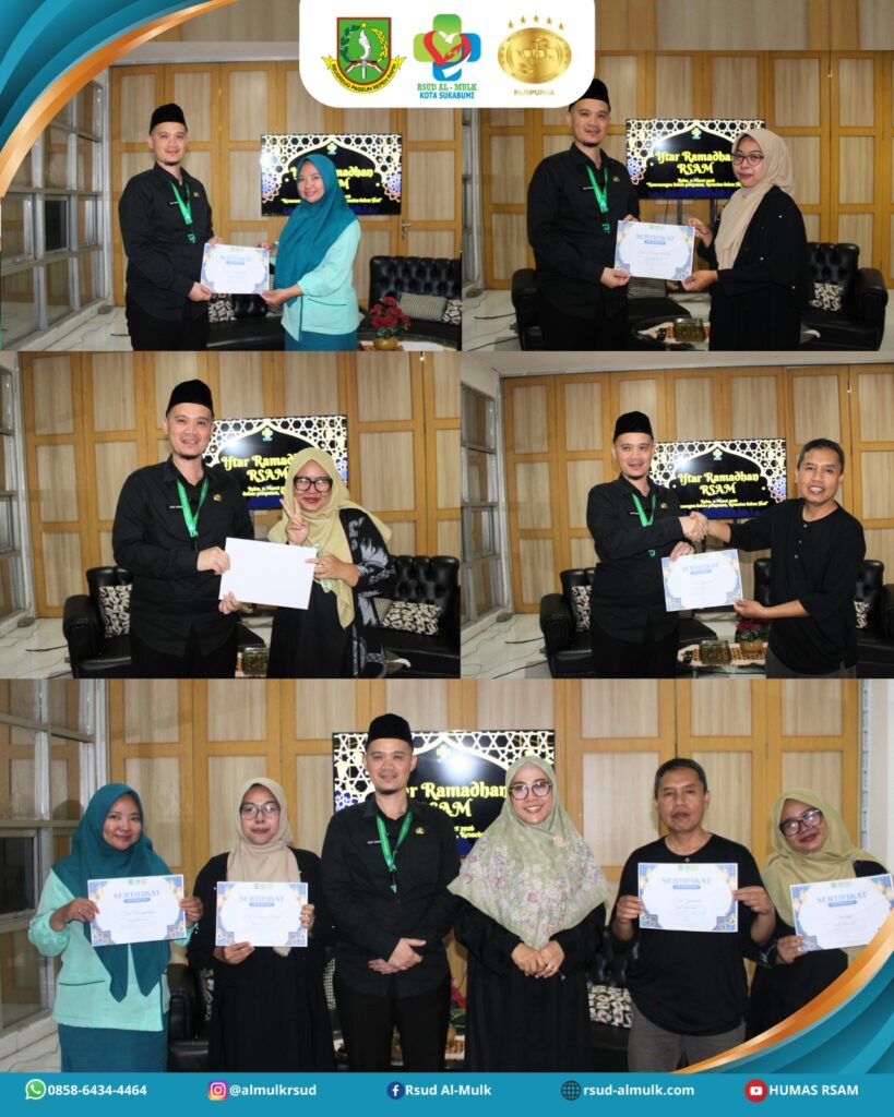 Dalam rangka menyemarakkan bulan suci Ramadan, keluarga besar RSUD Al-Mulk Kota Sukabumi menggelar kegiatan Iftar Jama’i yang diawali dengan berbagai perlombaan keagamaan, seperti Lomba Azan, Lomba LCC (Lomba Cerdas Cermat), dan Lomba Sholawat. Kegiatan ini menjadi sarana untuk meningkatkan semangat kebersamaan sekaligus mempererat ukhuwah di lingkungan RSUD Al-Mulk.