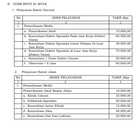 Tarif Retribusi Pelayanan RSUD Al-Mulk Sesuai Peraturan Daerah Nomor 2 Tahun 2025 Kota Sukabumi